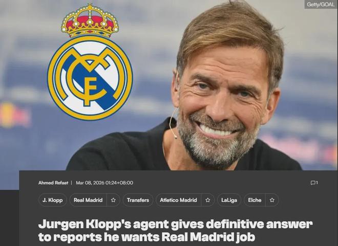 最近不断有传闻将克洛普和皇马的帅位联系在一起,不过,德国人的经纪人科西克在接受采访时澄清了这样的说法。