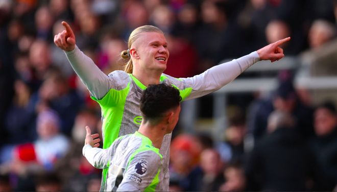 哈兰德轻松骗过亨德森,梅开二度,彻底锁定胜局,这也是打进了个人英超的第102个进球,仅仅落后C罗1球,落后德罗巴2球。