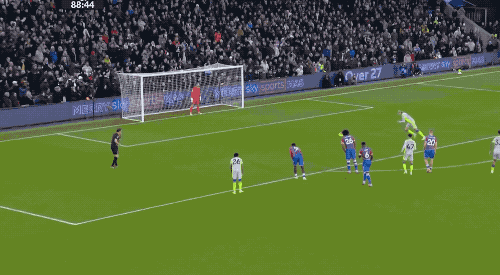 第87分钟,水晶宫球员配合失误,替补登场的萨维尼奥狂奔60多米到了禁区,亨德森被迫将其放倒,曼城获得点球。