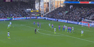 第29分钟,曼城前场任意球机会,福登主罚直接攻门,亨德森飞身将球扑出。