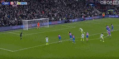 第41分钟,B席右路回做,努内斯斜传送到禁区后点,哈兰德拍马赶到头球攻门得手,曼城1-0水晶宫。