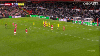 第50分钟,世界波!奥多伊吊射后点完成梅开二度,诺丁汉森林2-0热刺